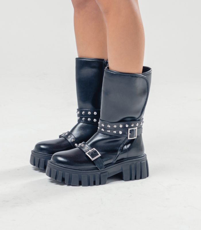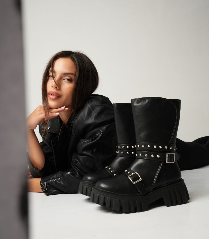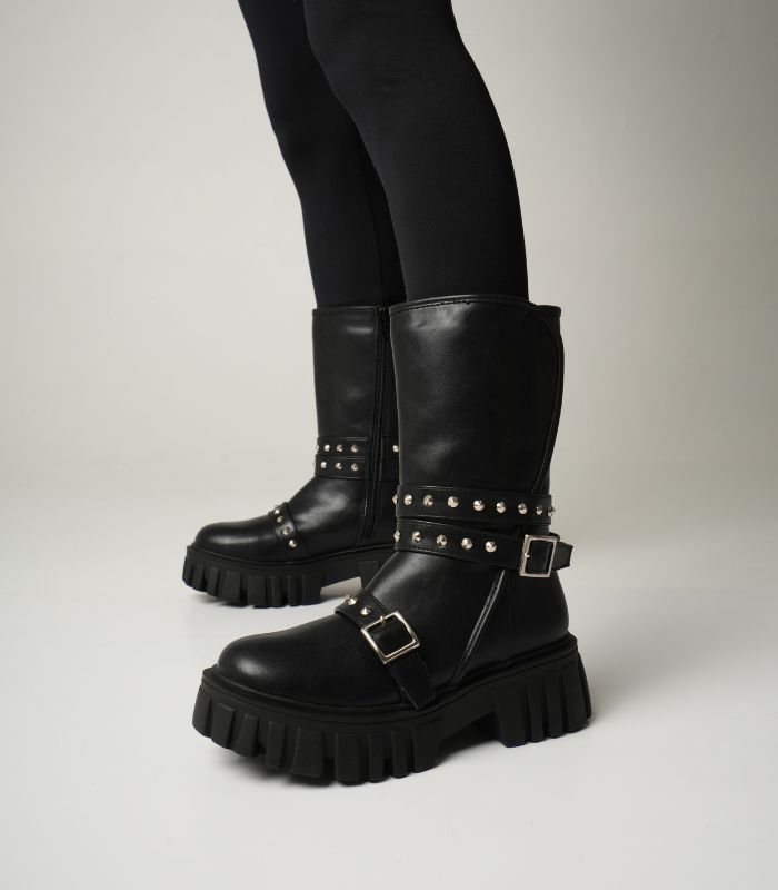 🖤 Borcego Caña Media Plataforma con Tachas y Hebillas Boston🖤