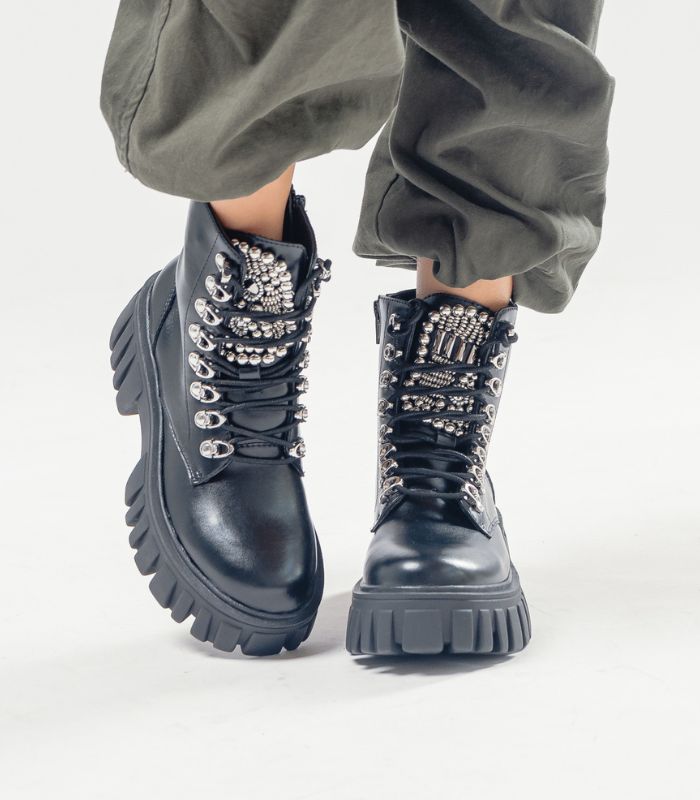 Ojales Cromados: Cuentan con ojales y ganchos metálicos plateados y robustos para los cordones, que complementan el brillo de las gemas y facilitan el ajuste.