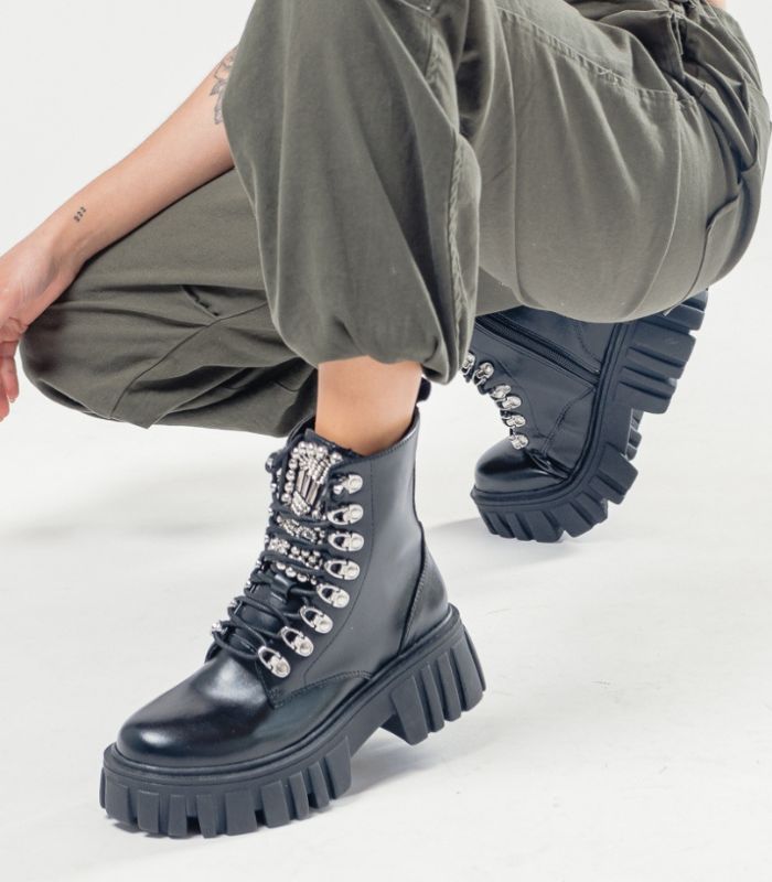 Diseñados para quienes no temen destacar, estos borcegos fusionan la robustez de un combat boot con el glamour de una joya. Son la pieza perfecta para inyectar una dosis de lujo y actitud a cualquier look.