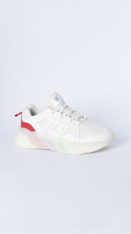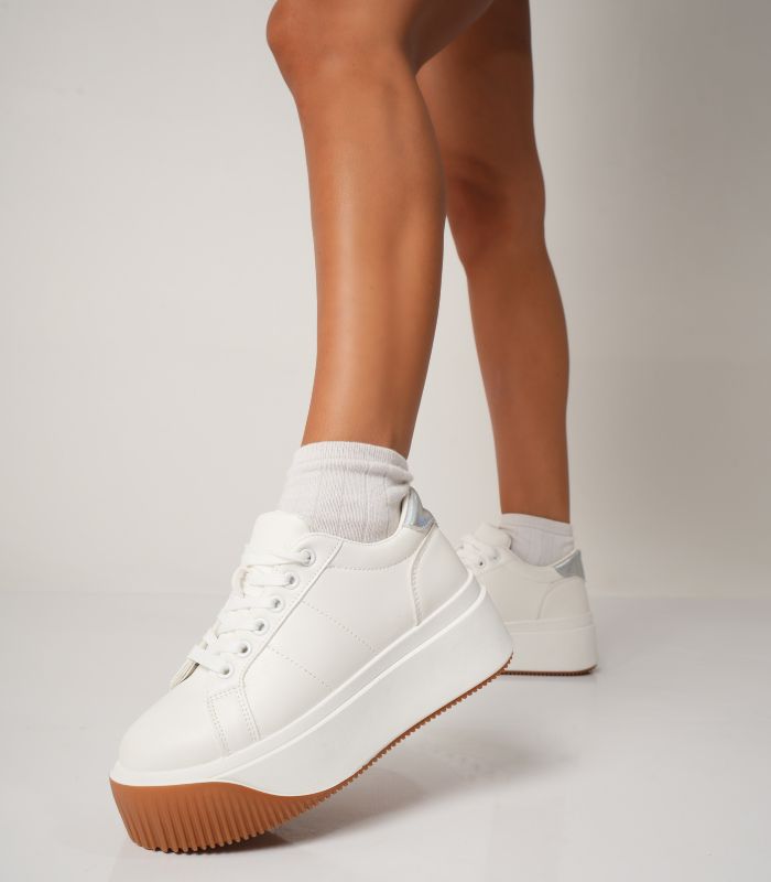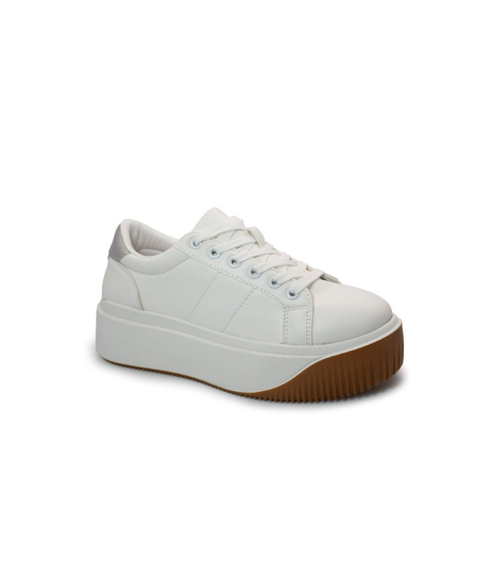 ¡El clásico blanco reinventado con un destello de glamour! Las Gummi Cheer son la zapatilla básica que tu guardarropa necesita, elevada por una plataforma ligera y un borde plateado metalizado que añade un toque festivo y chic. Perfectas para iluminar tu look diario sin esfuerzo.