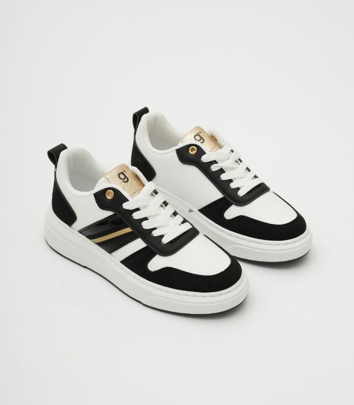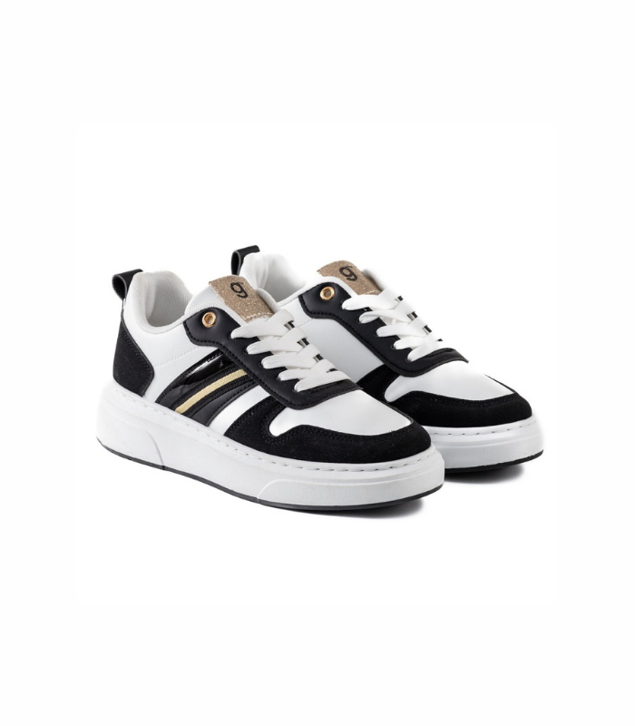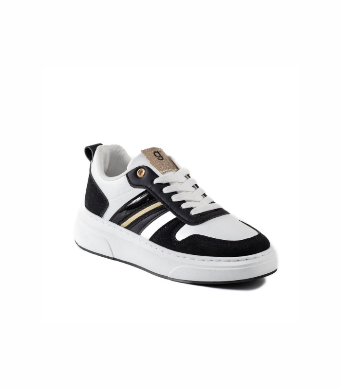 Este modelo es la definición de estilo sport-chic, ofreciendo el contraste atemporal del blanco y negro, realzado por un toque de lujo en dorado metálico. Son perfectas para inyectarle carácter a tu look diario, manteniendo la máxima comodidad.