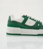 Verde: Presenta paneles laterales en una llamativa lona con un monograma discreto en relieve (similar a flores y logos), dándole una apariencia de alta costura.
