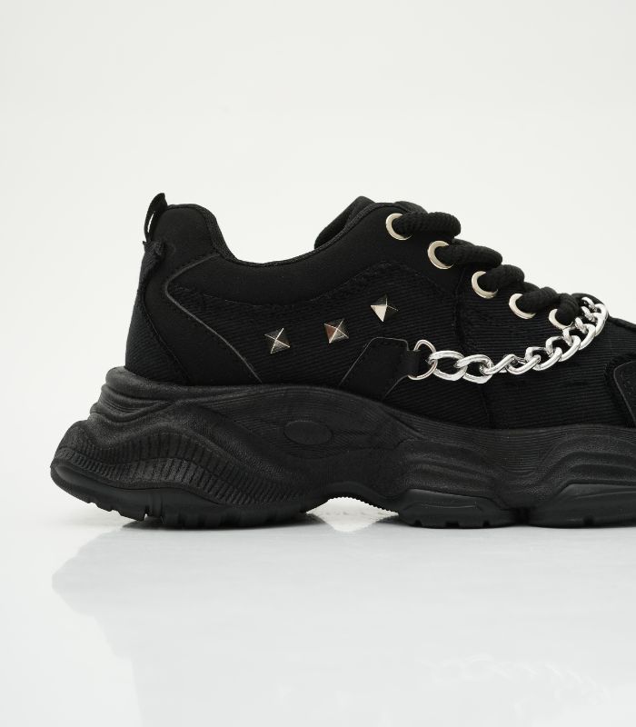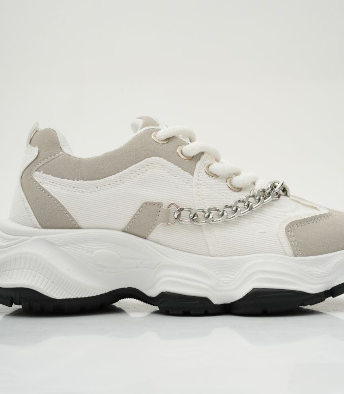 Este diseño audaz captura la esencia del estilo chunky con su plataforma exagerada, mientras que el detalle de la cadena le inyecta un aire de rebeldía y lujo. Es la combinación ideal de confort deportivo y moda de vanguardia, perfecta para quienes se atreven a destacar.