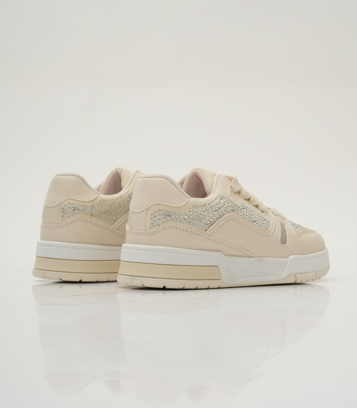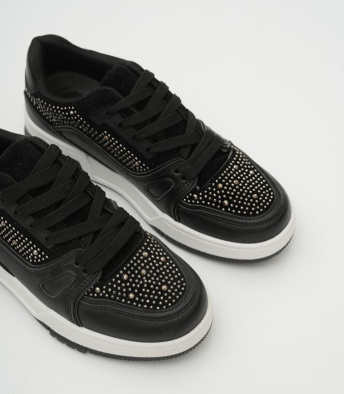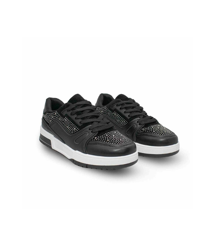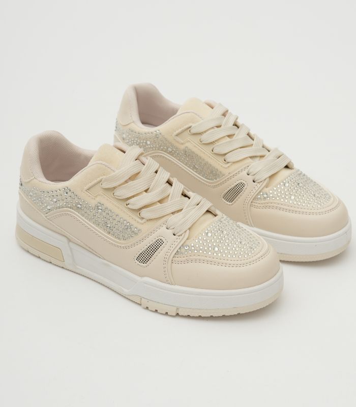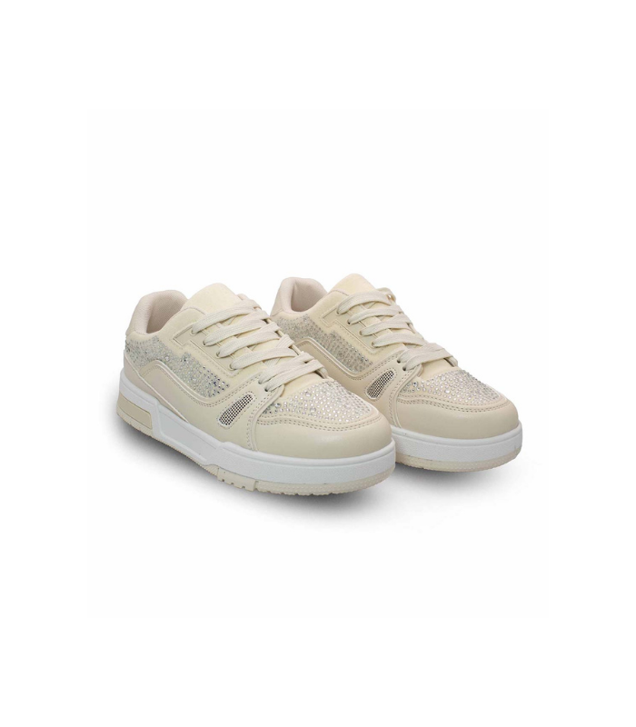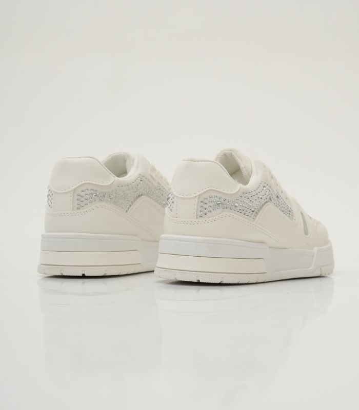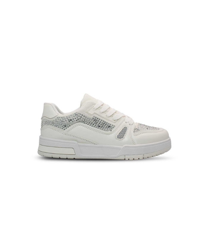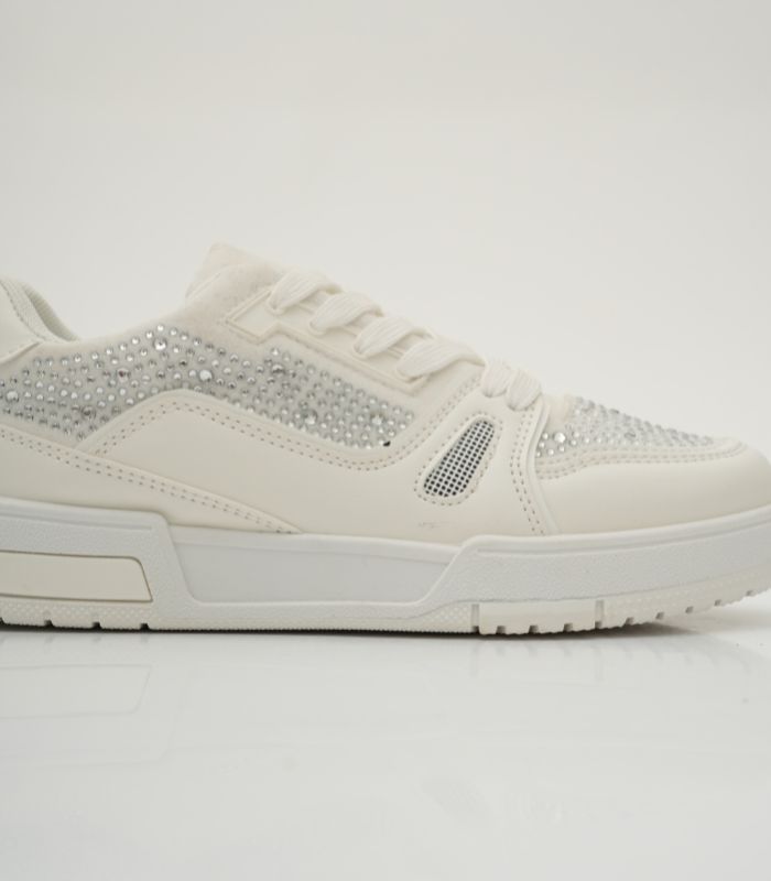 Versatilidad: La base blanca pura permite que la pedrería sea la protagonista, haciendo que estas zapatillas sean ideales para llevar con looks casuales o para dar un toque inesperado a un conjunto más formal.