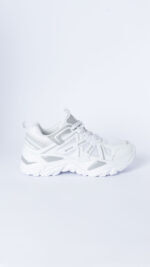 Suela Chunky Esculpida: La suela exterior blanca es gruesa y con un patrón agresivo y texturizado. Esta amortiguación voluminosa no solo eleva tu altura, sino que garantiza una excelente absorción de impactos y un look inconfundible.